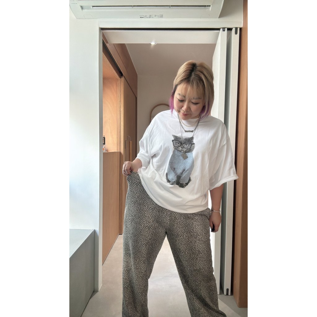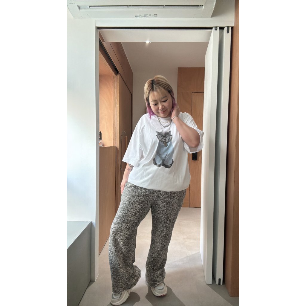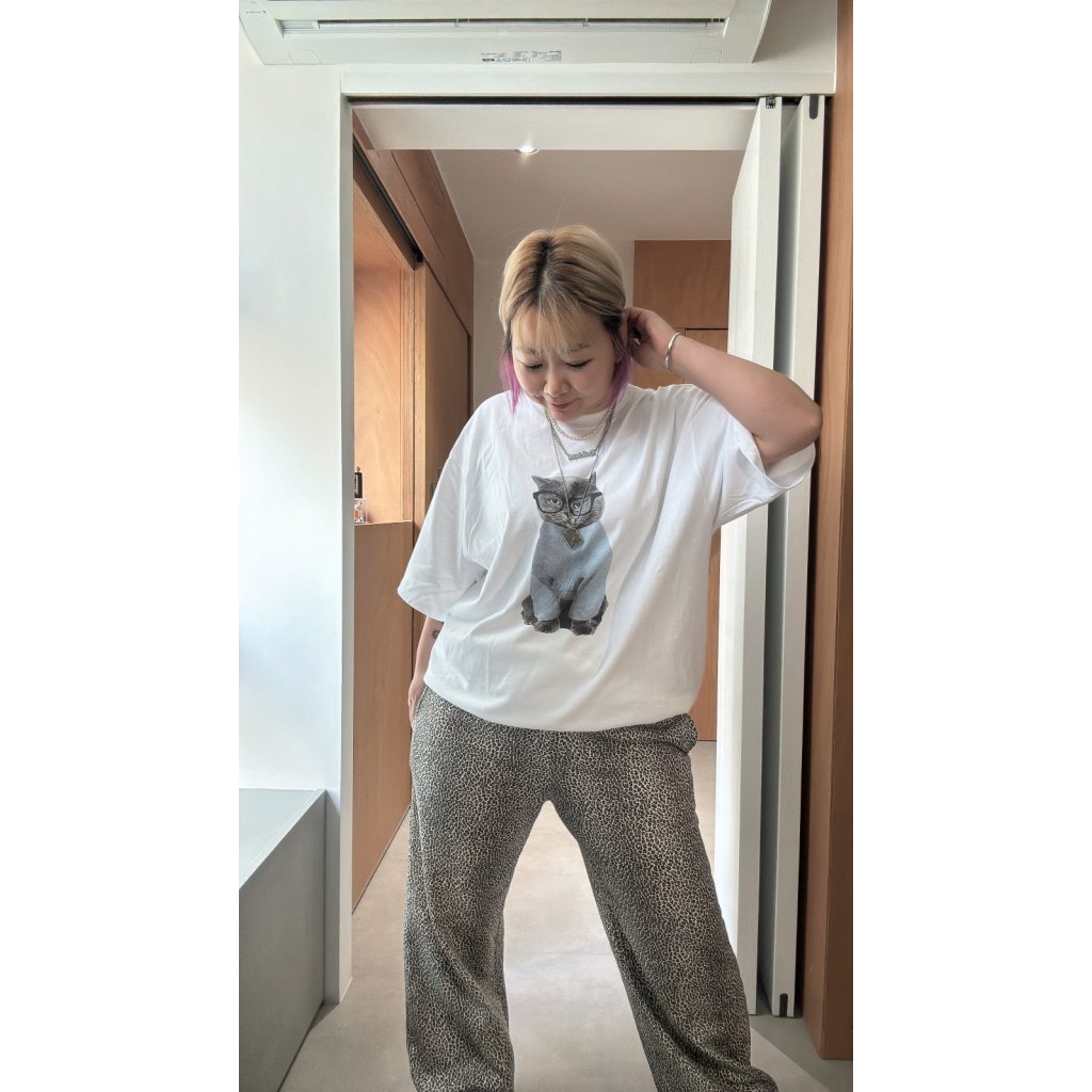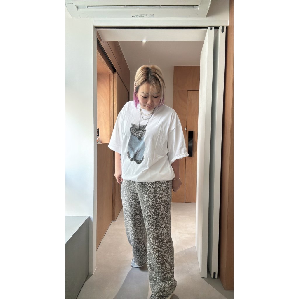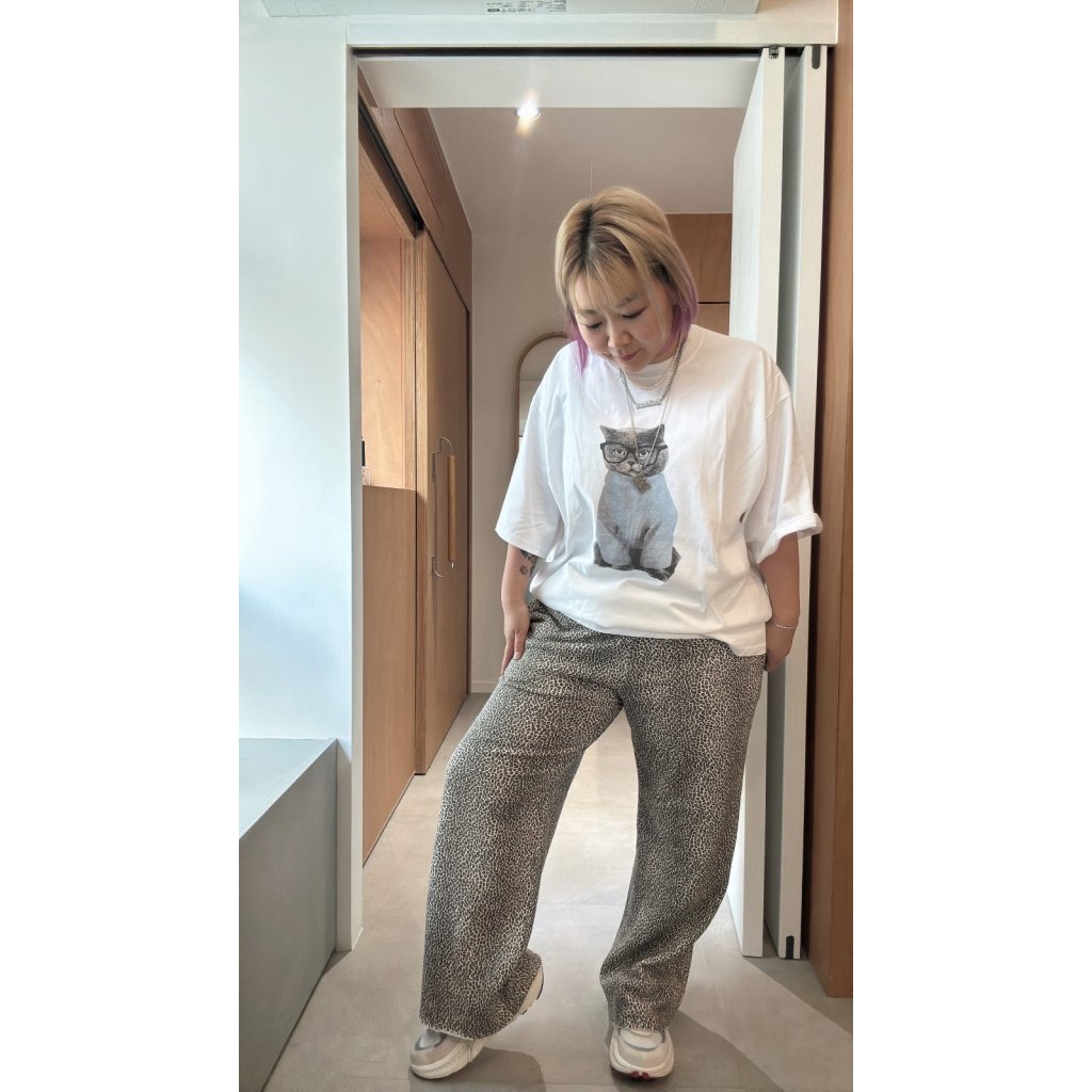 P-6135 細細點珠地料豹紋褲(Raw邊)
