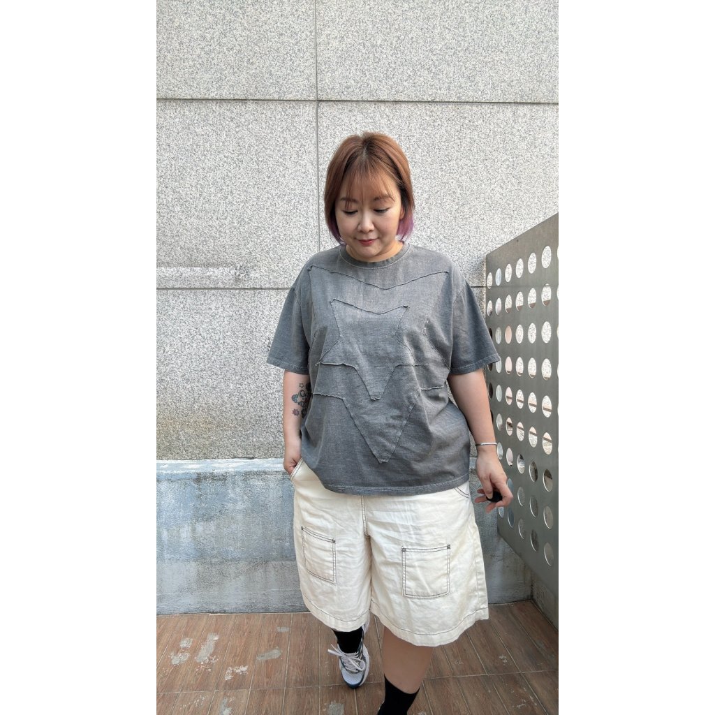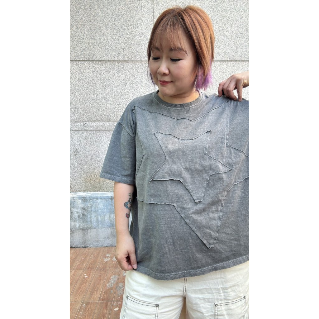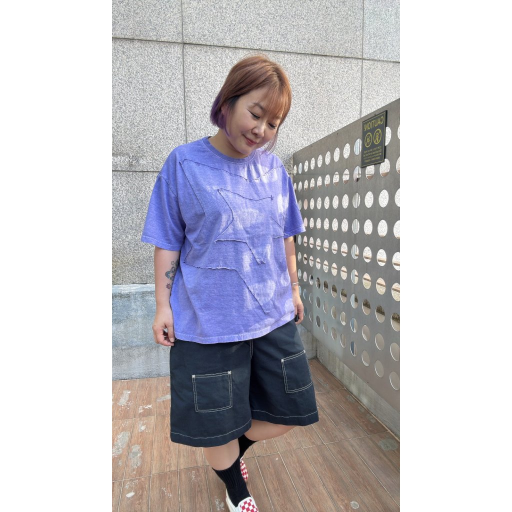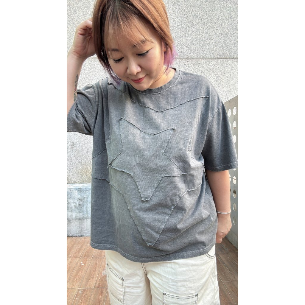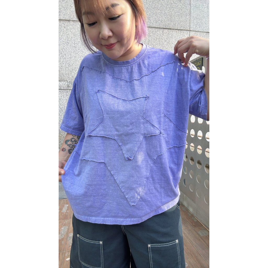 T-6160 洗水拼布星星Tee(紫/炭)