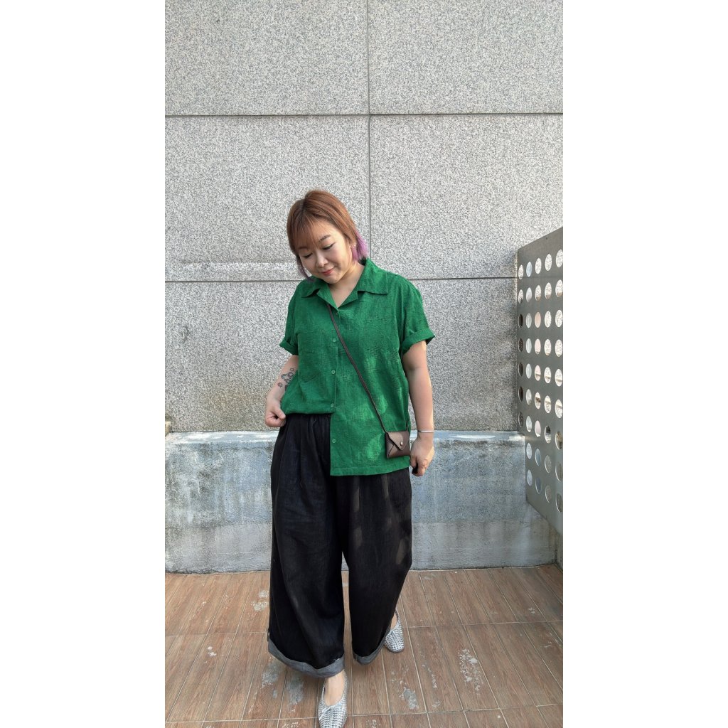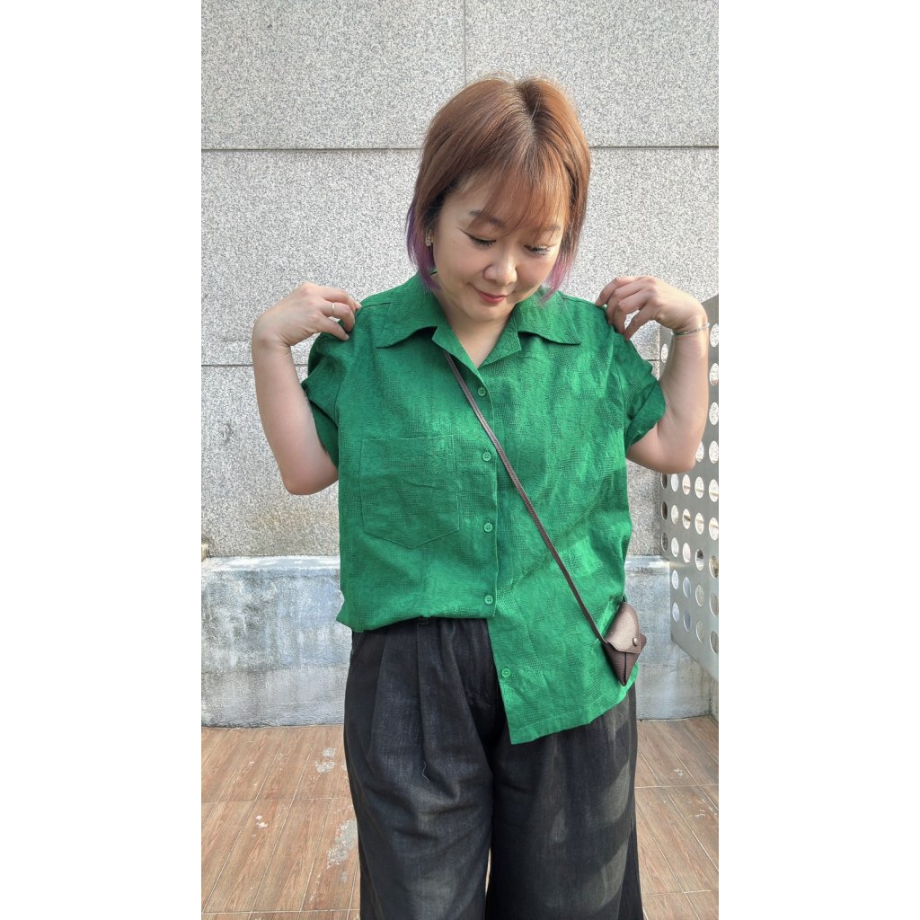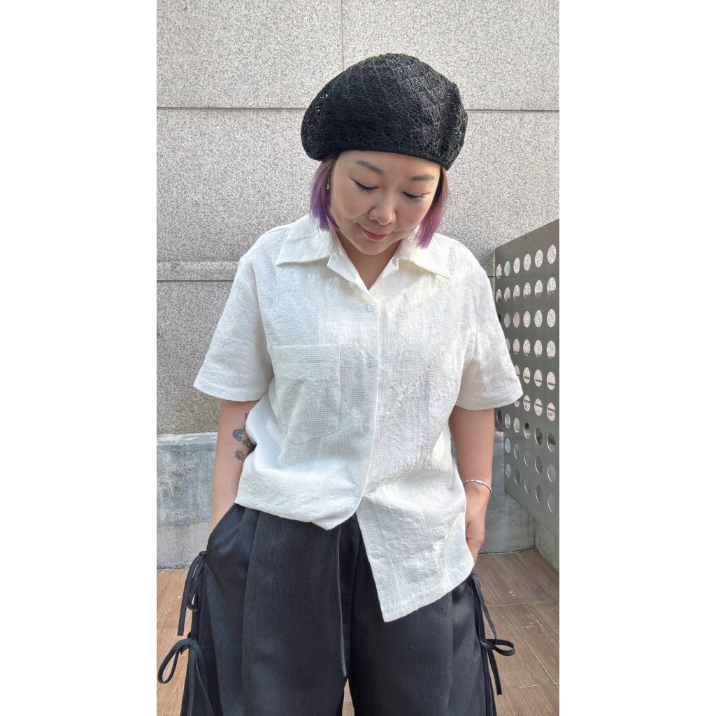 名稱: 刺繡暗花布裇衫(象牙白/綠)