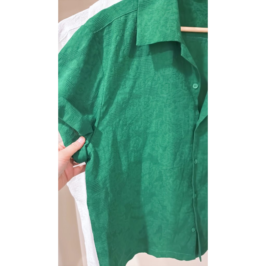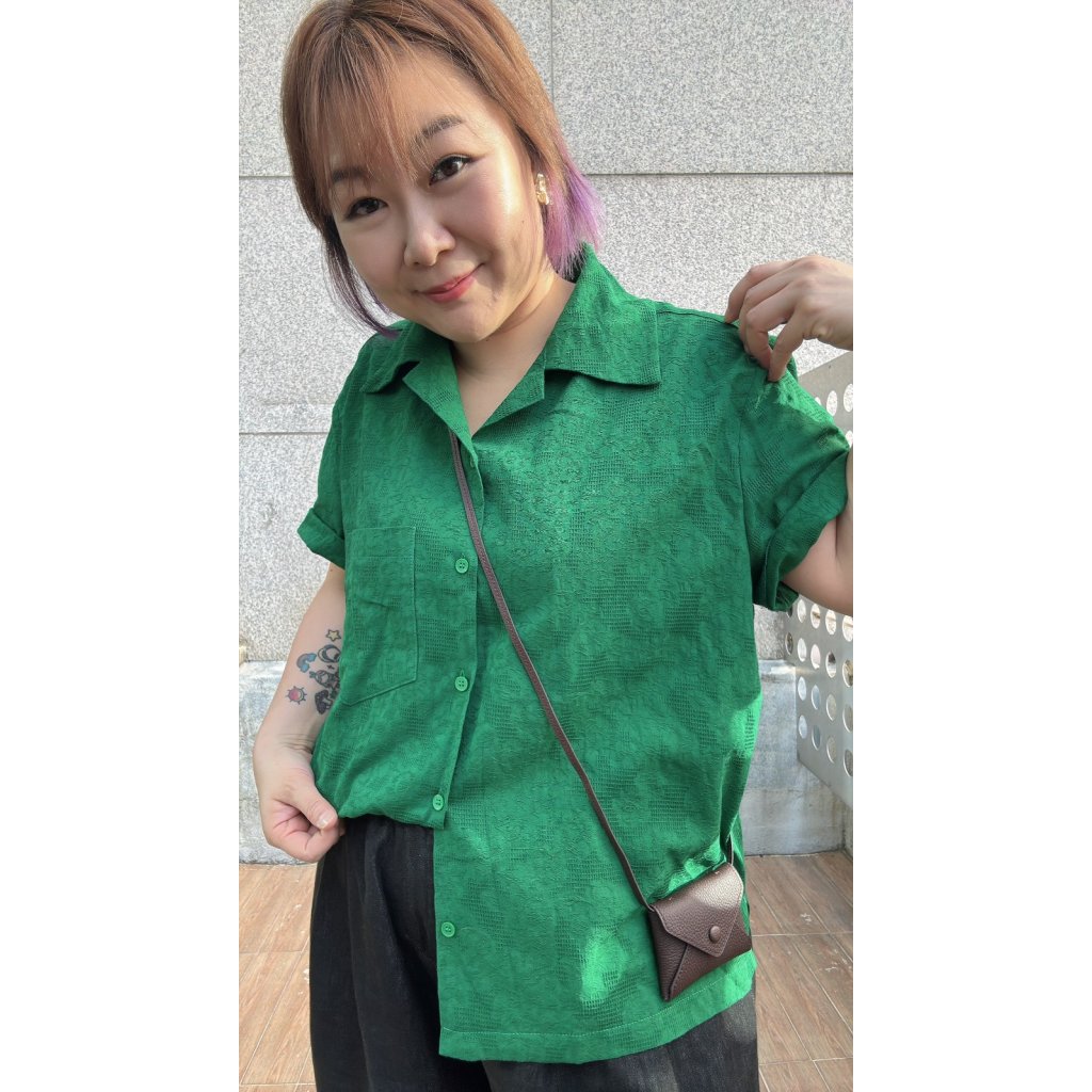T-6161 刺繡暗花布裇衫(象牙白/綠)