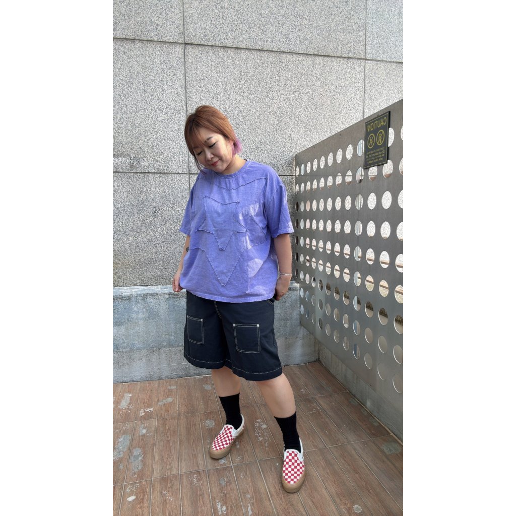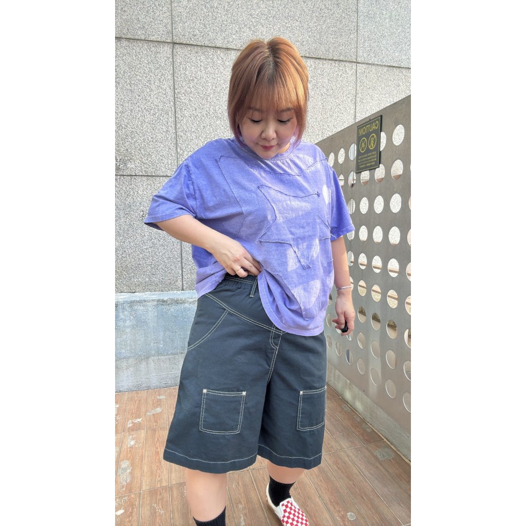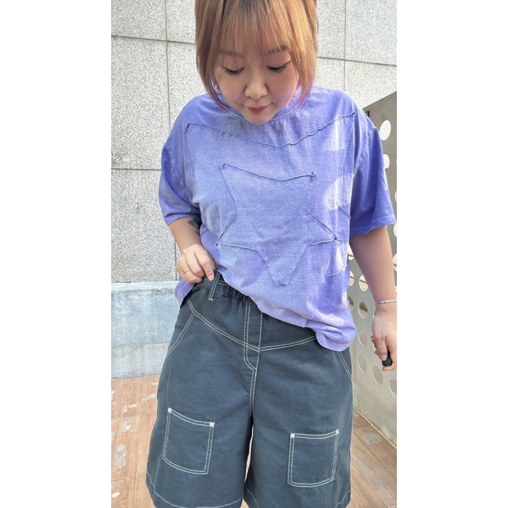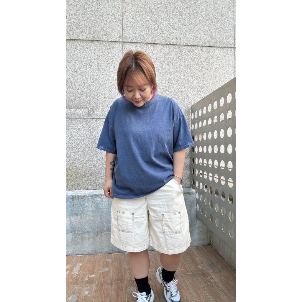 P-6185 前兩小方袋明線短褲(藍/米白)